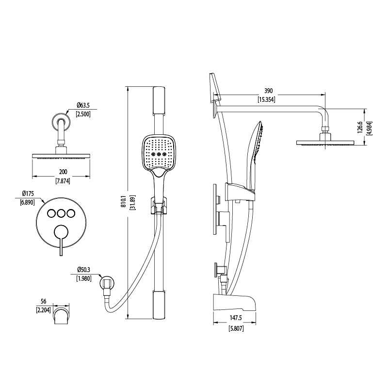 Includes wall bar & flexible hose