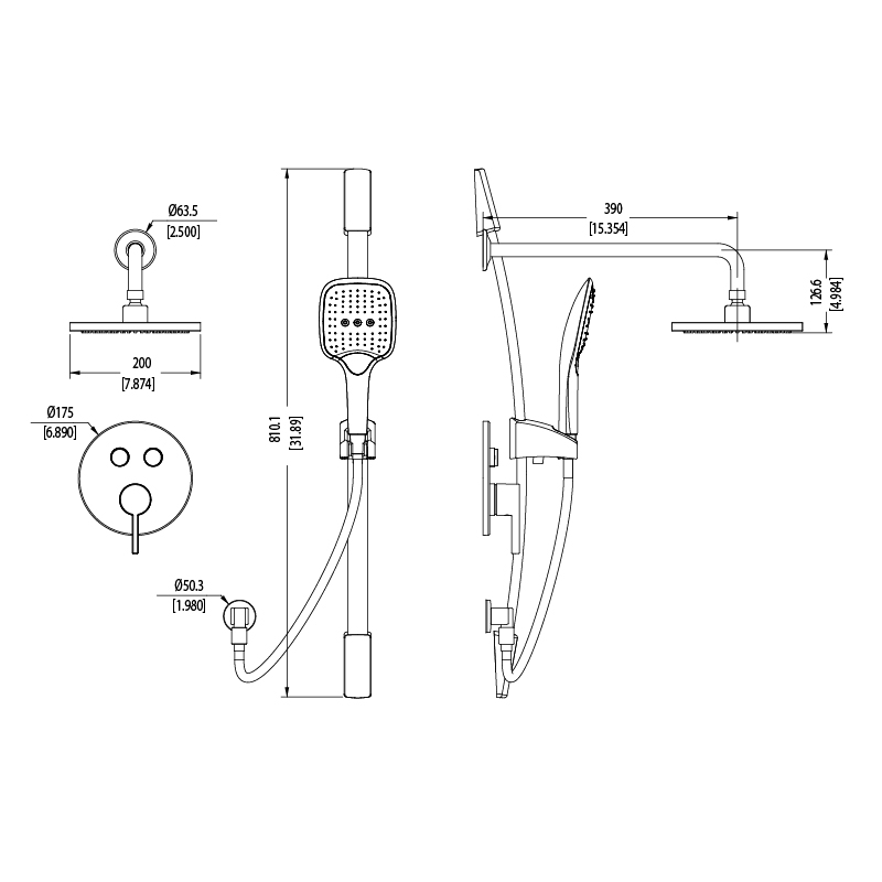Includes wall bar & flexible hose