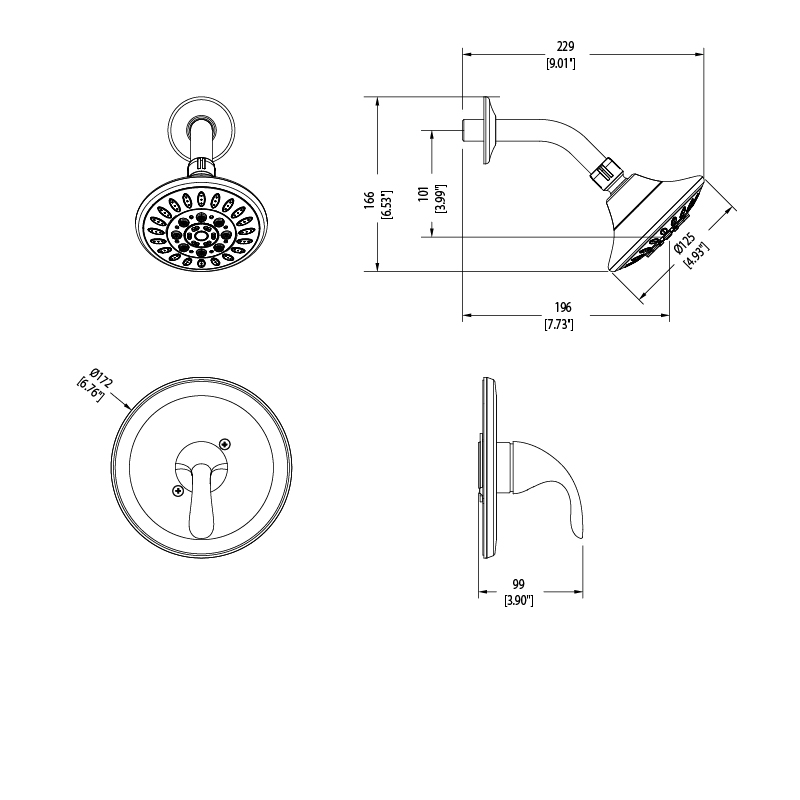 In-wall mounted shower faucet without spout