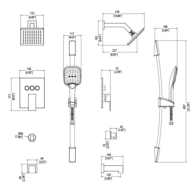 Includes wall bar & flexible hose