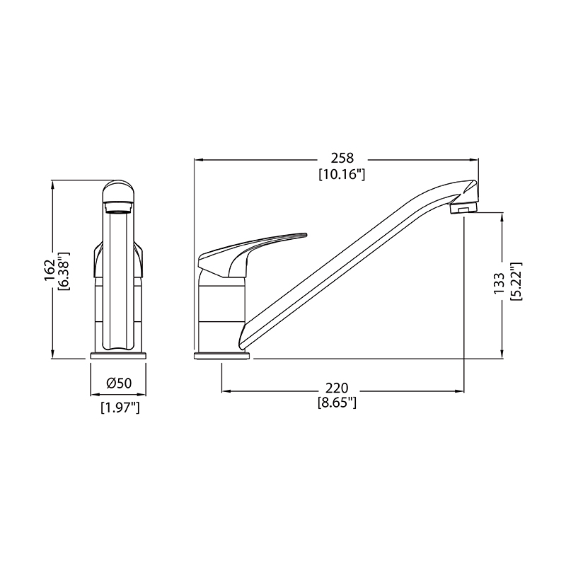 Single hole installation without deck plate(optional deck plate sold separately)
