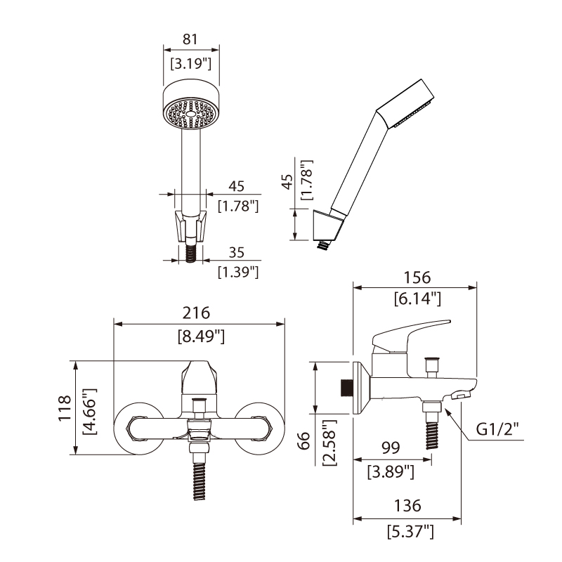 Wall-mounted bath and shower faucet